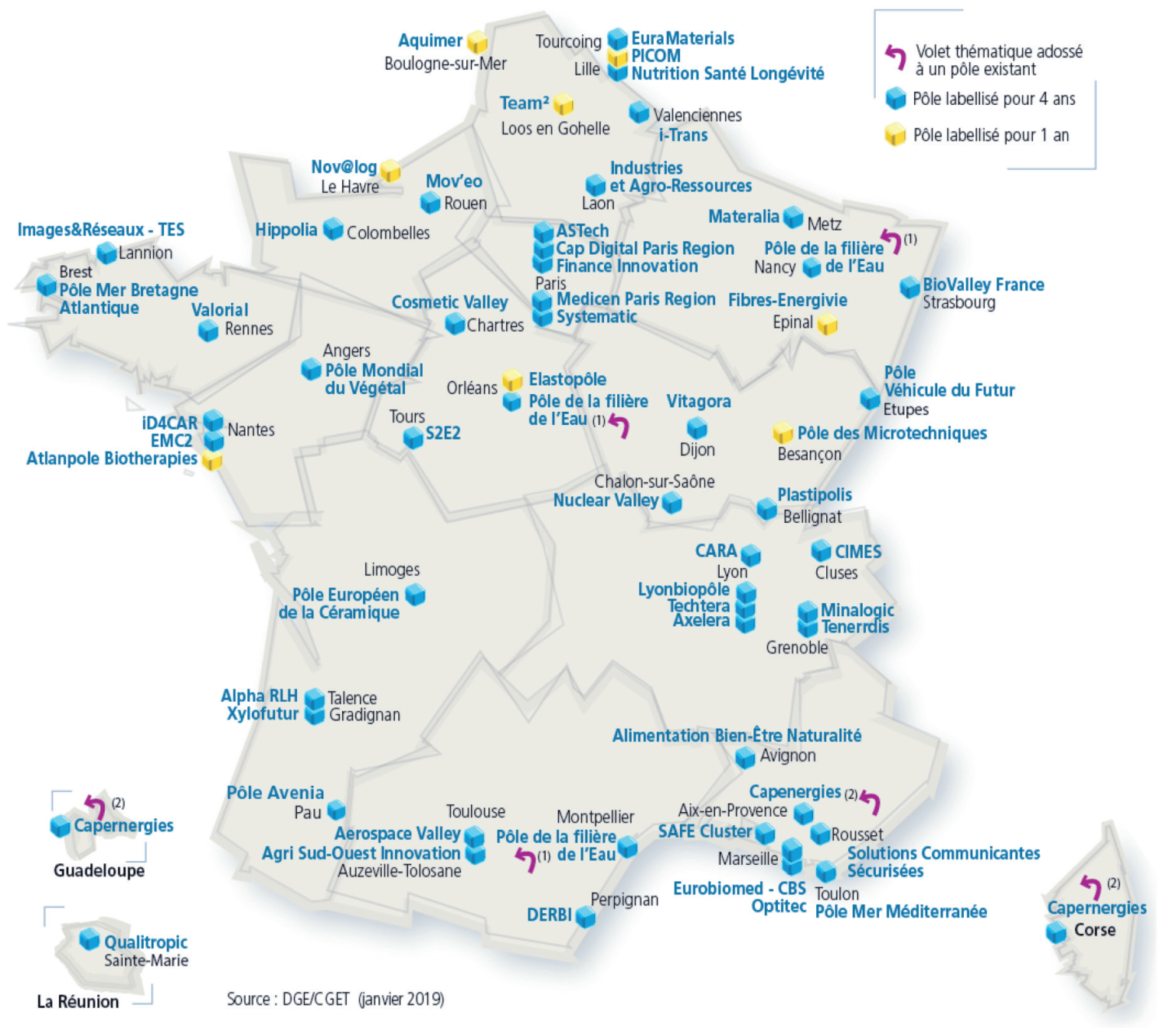 Au 5 février 2019, il y avait 56 pôles de compétitivité en France certifiés par les autorités françaises pour la période 2019-2022 (voir carte). 48 ...
