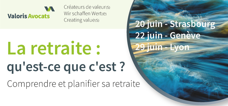 Trois colloques dans trois villes de notre partenaire Valoris avocats : La retraite : qu’est-ce que c’est ? Comprendre et planifier la retraite franco-suisse. Carrières internationales, taux plein, réforme, cotisations, trimestres, chômage … Toutes ces notions vous laissent perplexes ? Venez rencontrer les spécialistes de Valoris avocats pour y voir plus clair ! Lors d’un […]